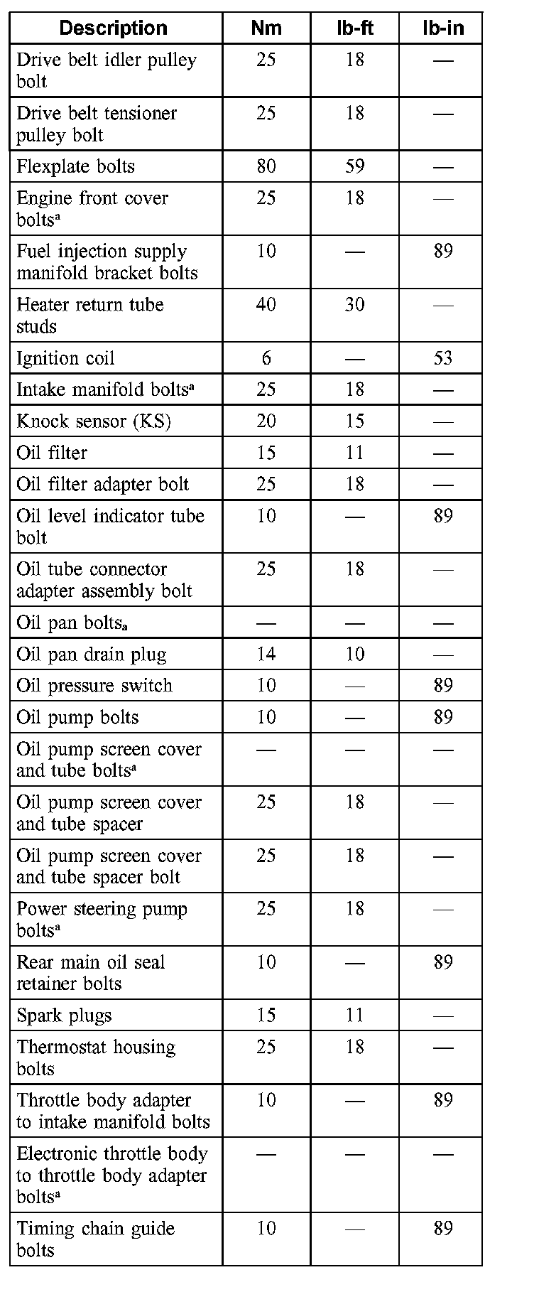 Torque Specifications