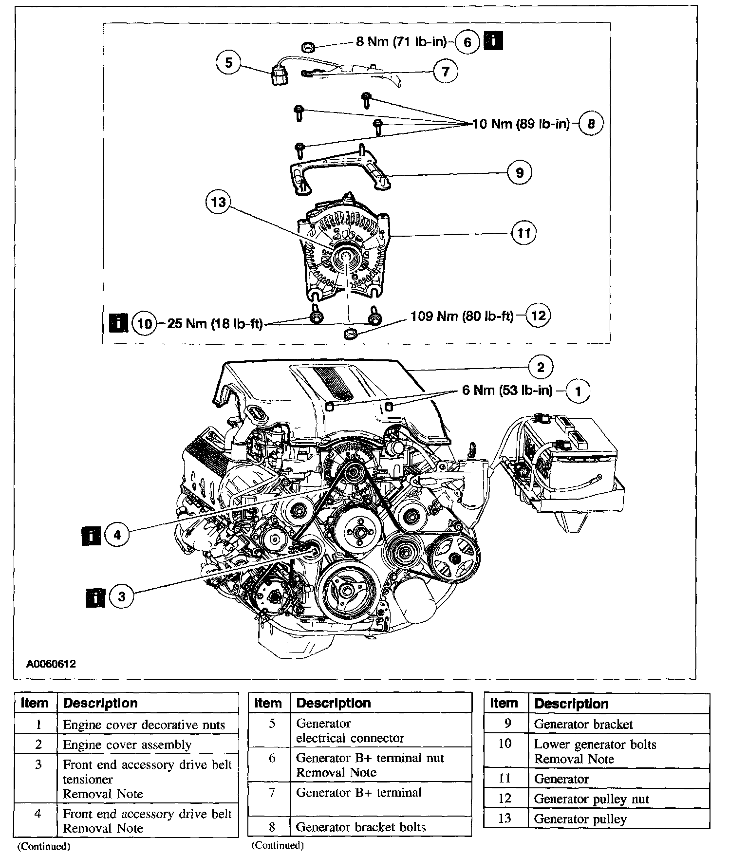 Item 6: Generator B+ Terminal Nut Removal Note