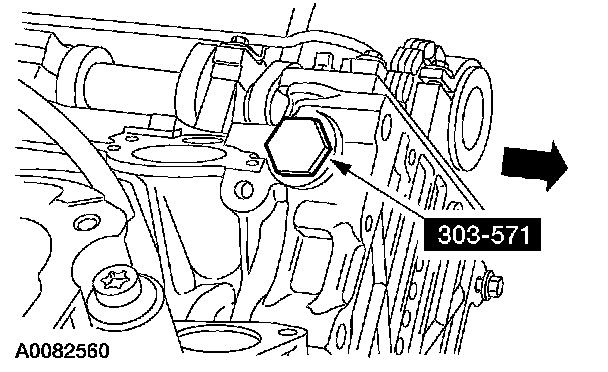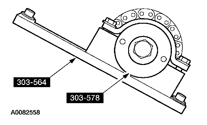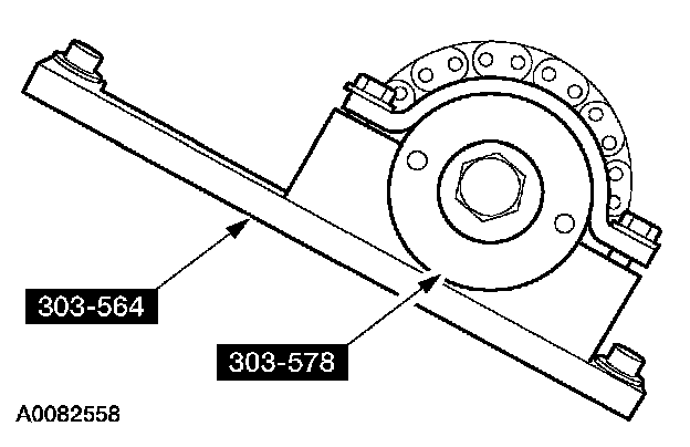 82. NOTE: Do not tighten the special tool top two clamp bolts. Camshaft sprocket must rotate freely.