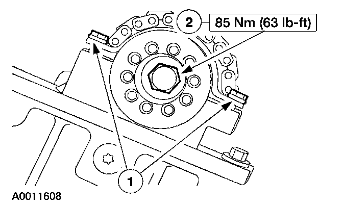 80. CAUTION: The right-hand camshaft sprocket bolt is a left-hand threaded bolt.