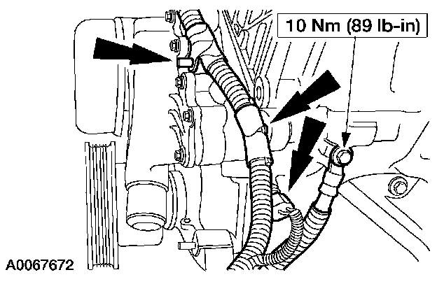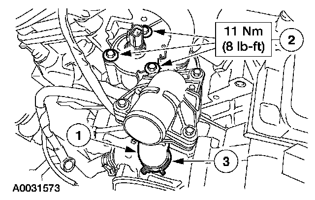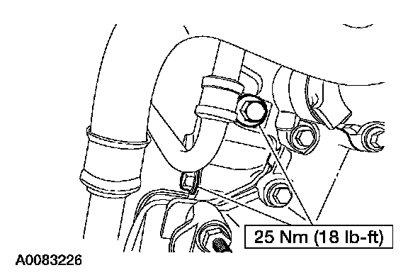 1. Install the thermostat housing and bypass hose onto the coolant pump.