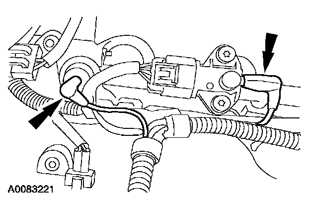 104. Connect the crankshaft position (CKP) sensor electrical connectors and wiring anchors.