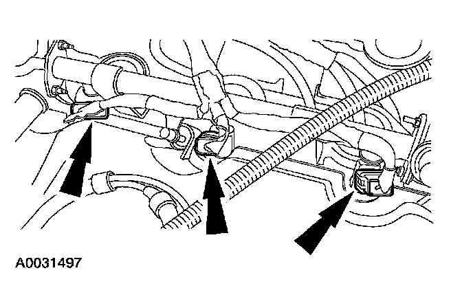 101. Position the vacuum harness on the engine and connect the fuel pressure and temperature sensor and fuel pulse damper vacuum hose fittings.