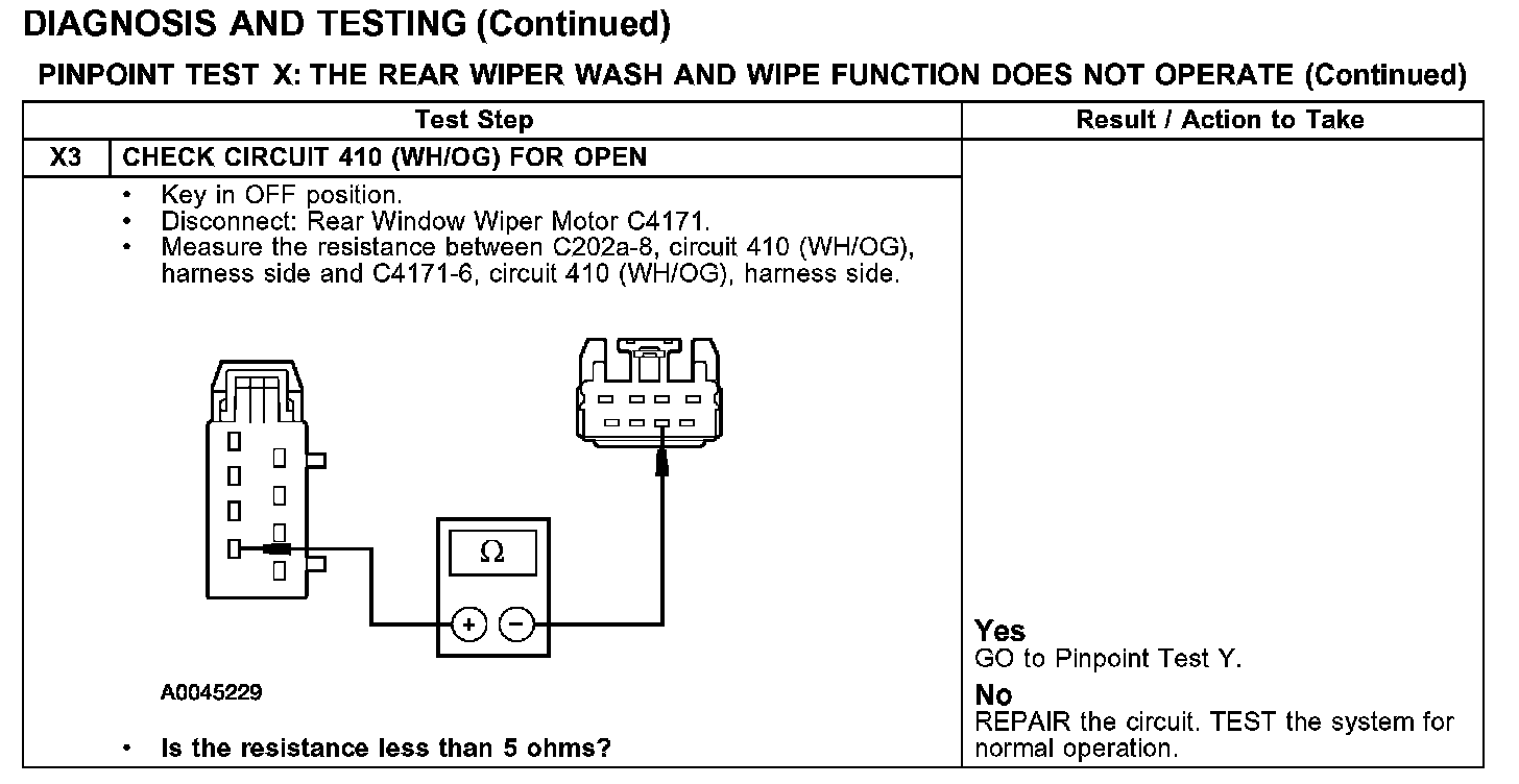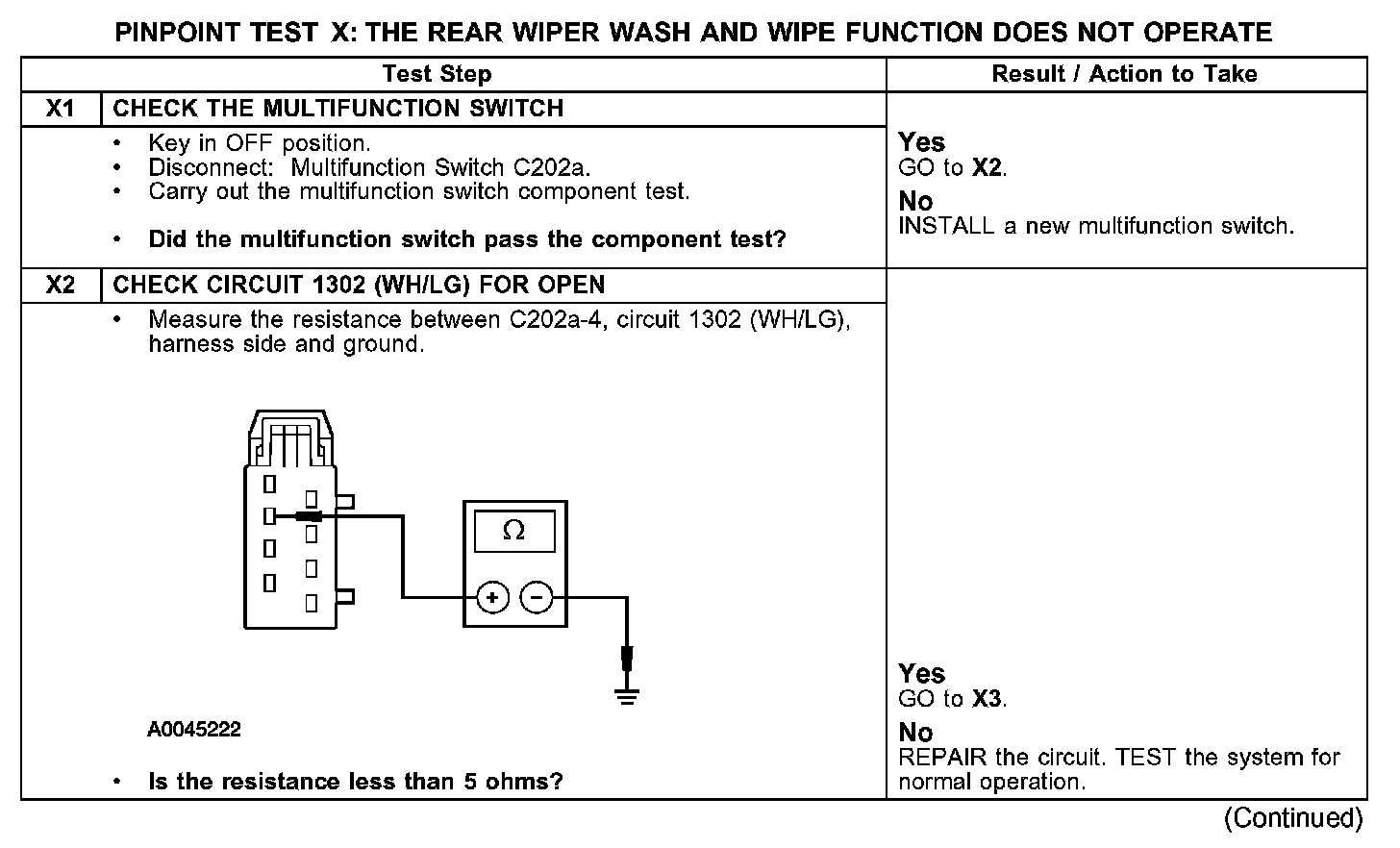 PINPOINT TEST X: THE REAR WIPER WASH AND WIPE FUNCTION DOES NOT OPERATETest X1-X2: