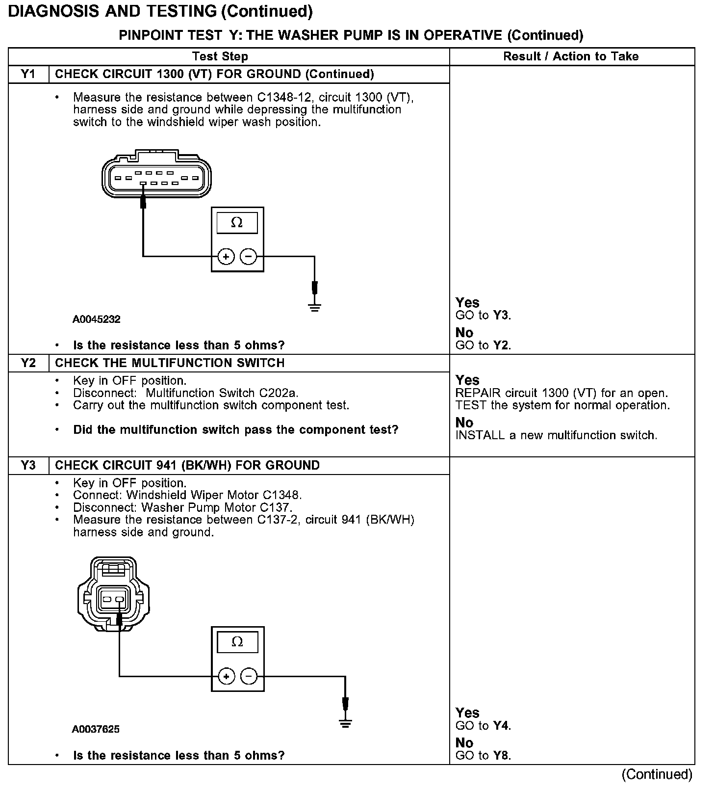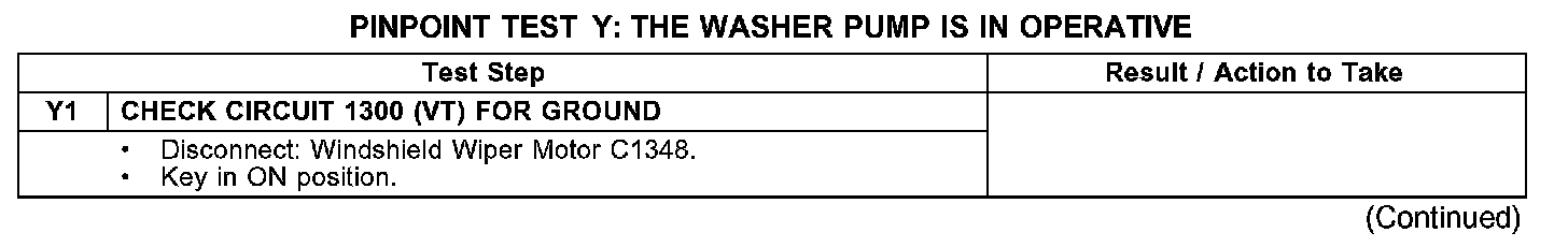 PINPOINT TEST Y: THE WASHER PUMP IS INOPERATIVETest Y1: