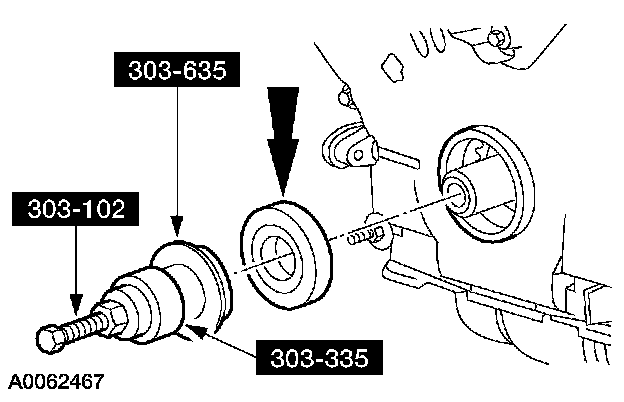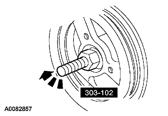 55. NOTE: Use special tool 303-D055 to hold the crankshaft pulley. Install the bolt and washer. Tighten the bolt in four stages.