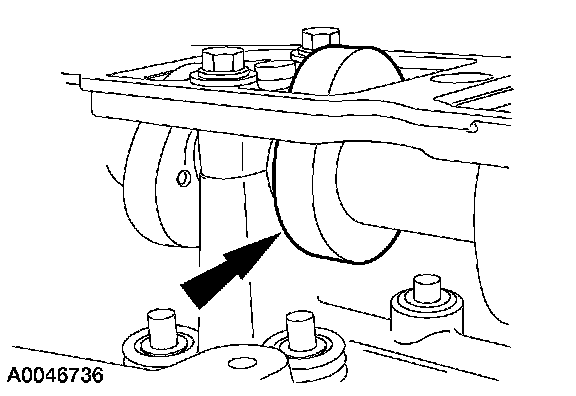 Apply a 4 mm (0.16 inch) bead of silicone gasket and sealant around the rear oil seal retainer sealing surface.