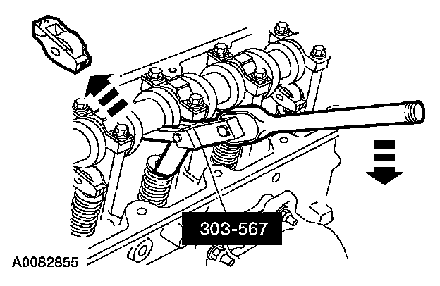 58. Use the special tool to compress the valve spring and install the camshaft roller followers.