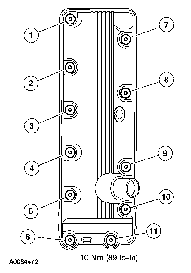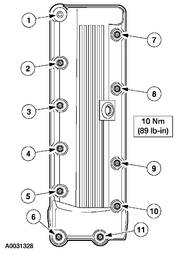 67. Install the right valve cover and tighten the bolts in the sequence shown.