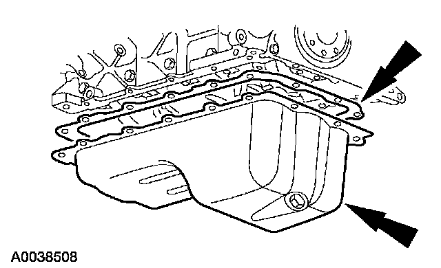 75. Position the new oil pan gasket and the oil pan and loosely install the bolts.