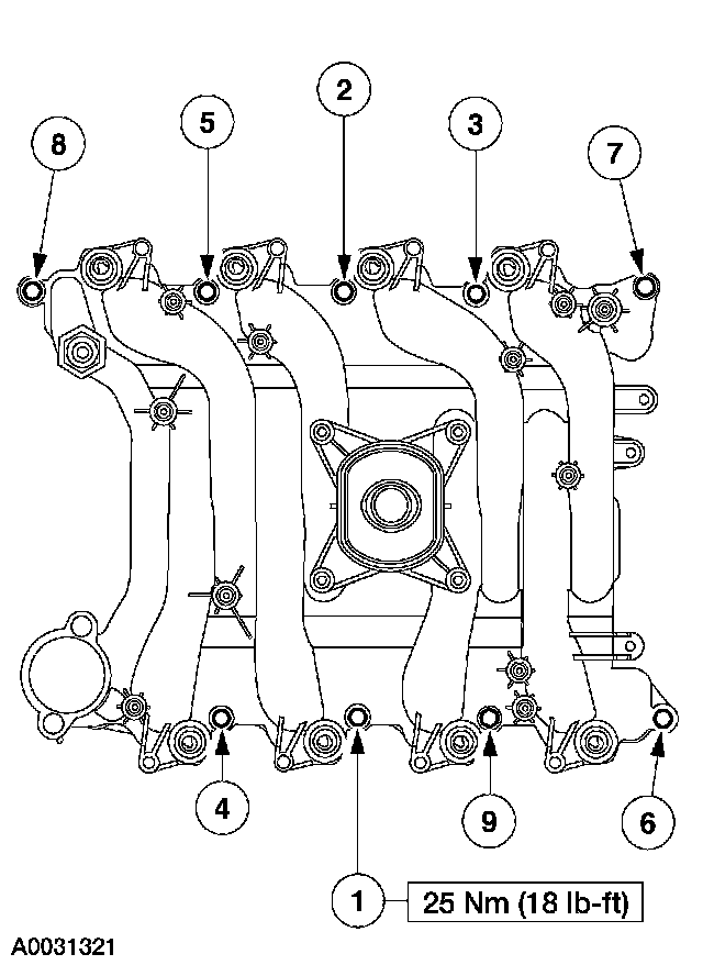 84. Install the intake manifold and tighten the bolts in the sequence shown.
