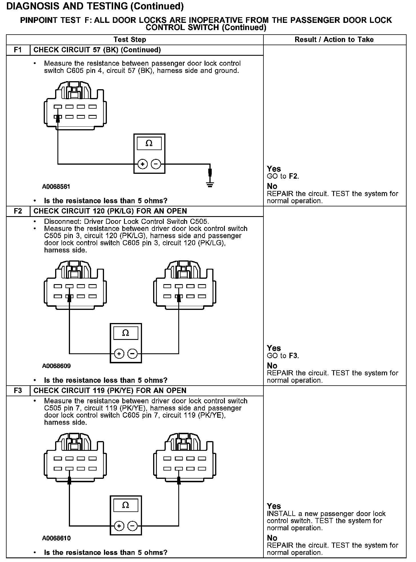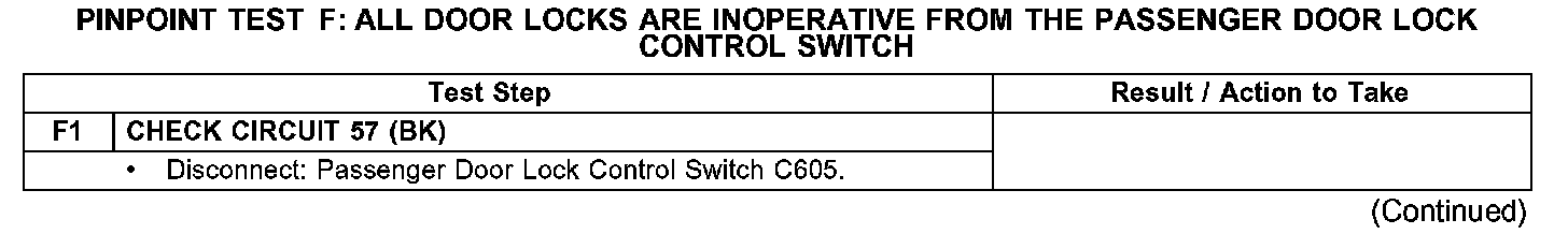 PINPOINT TEST F: ALL DOOR LOCKS ARE INOPERATIVE FROM THE PASSENGER DOOR LOCK CONTROL SWITCH