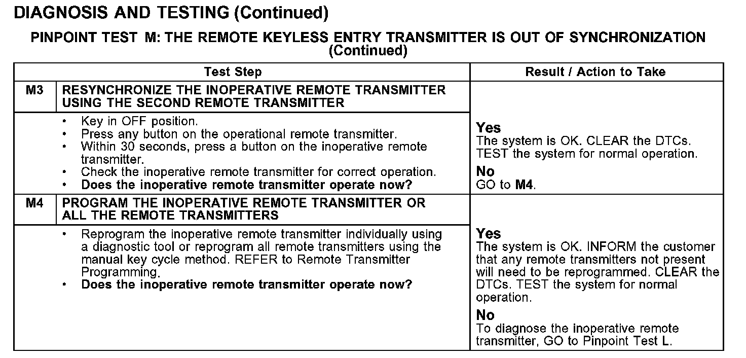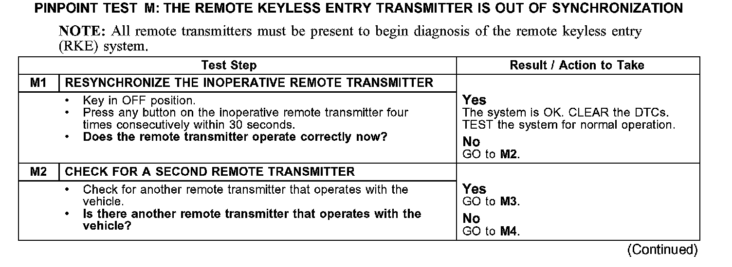 PINPOINT TEST M: THE REMOTE KEYLESS ENTRY TRANSMITTER IS OUT OF SYNCHRONIZATION