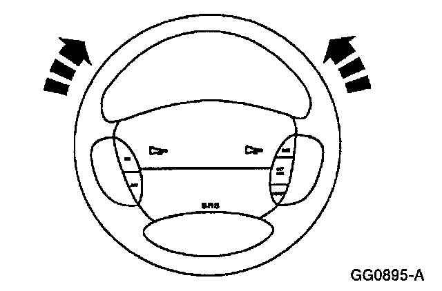 2. Turn the engine off, and hold the steering wheel in the "straight forward" position by attaching a rigid link from the steering wheel to the brake pedal.