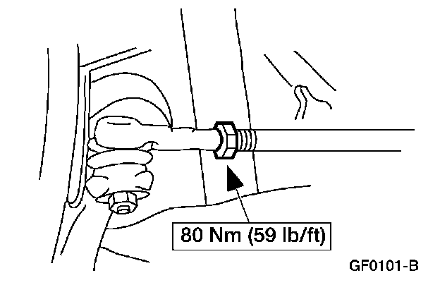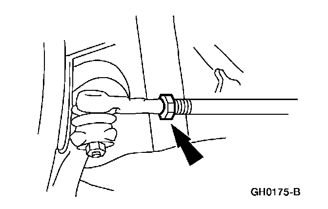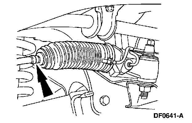 4. NOTE: Do not allow the steering gear bellows to twist when the front wheel spindle tie-rod is rotated.