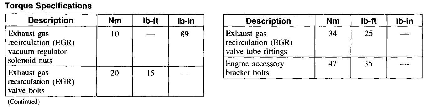 Torque Specifications: