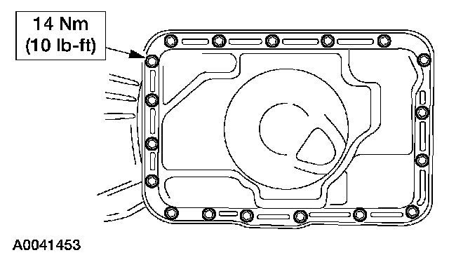 Tighten transmission fluid pan screws in a crisscross sequence.