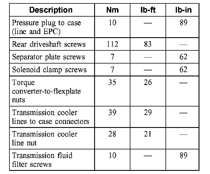 Torque Specifications