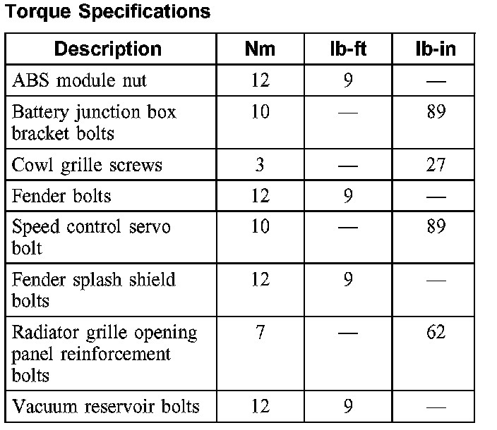 Torque Specifications:
