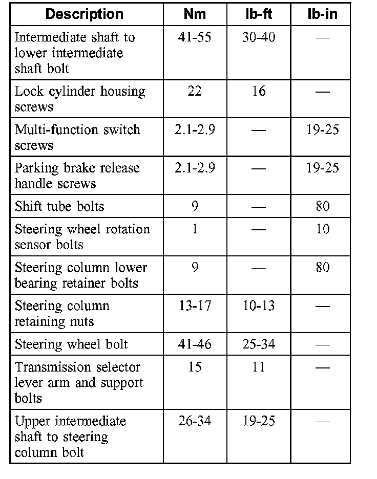 Torque Specifications