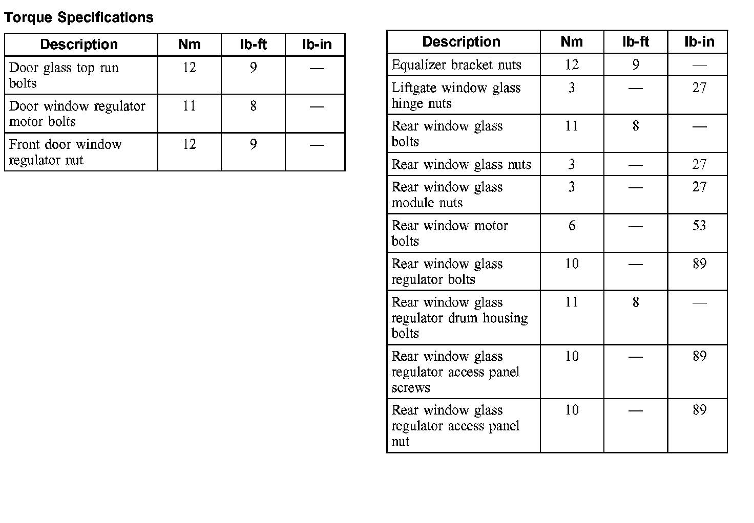 Torque Specifications: