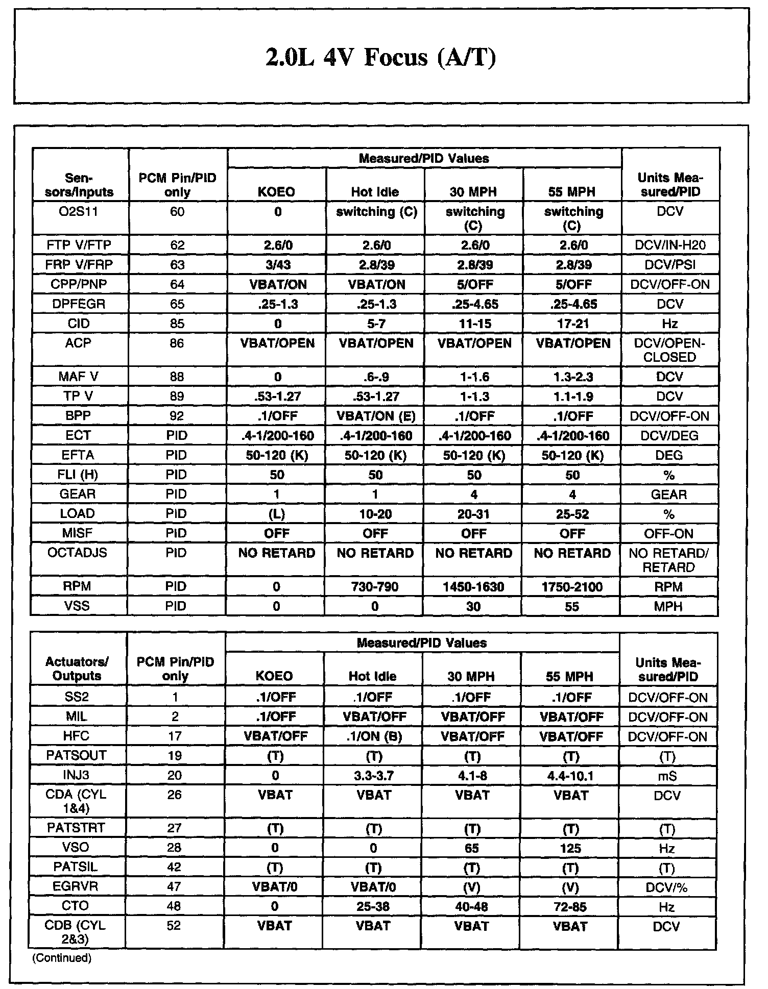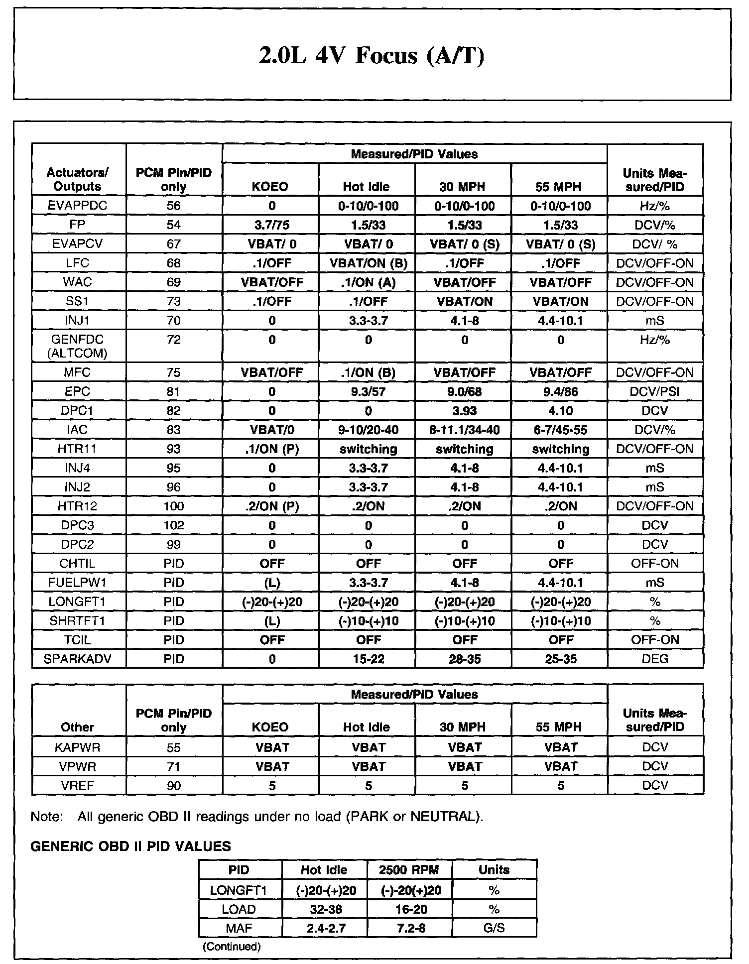2.0L 4V Focus (A/T)