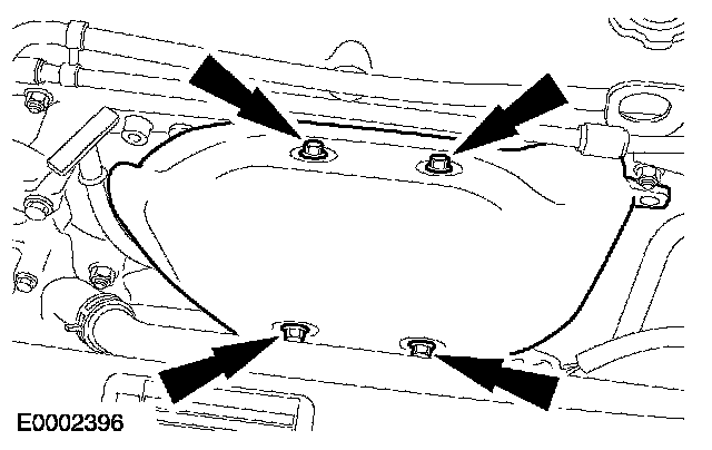 7. Remove the bolts and the exhaust manifold heat shield.