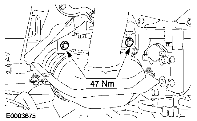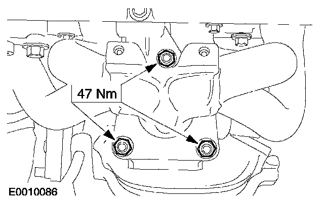 6. NOTE: To correctly seat the converter, alternately tighten the exhaust manifold-to-catalytic converter nuts to specification.