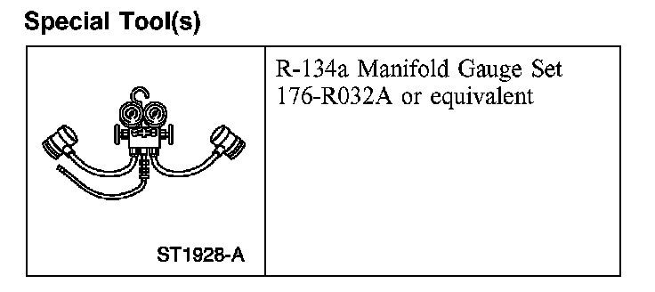 4. Connect the R-134a Manifold Gauge Set low-pressure hose and the R-134a low side quick disconnect to the low-pressure service gauge port valve.