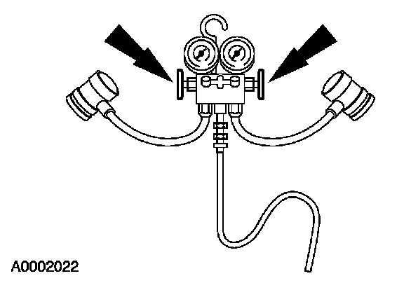 1. Turn both valves on the R-134a Manifold Gauge Set clockwise to close the low- and high-pressure hoses to the center manifold and center hose.