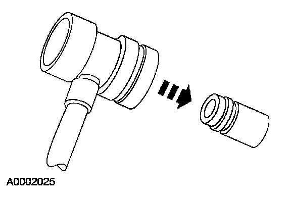 3. Remove the A/C charging valve cap from the high-pressure service gauge port valve.