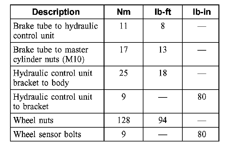 Torque Specifications