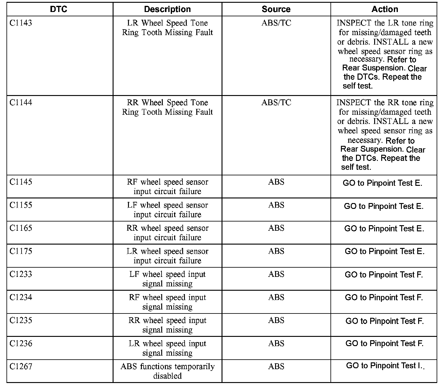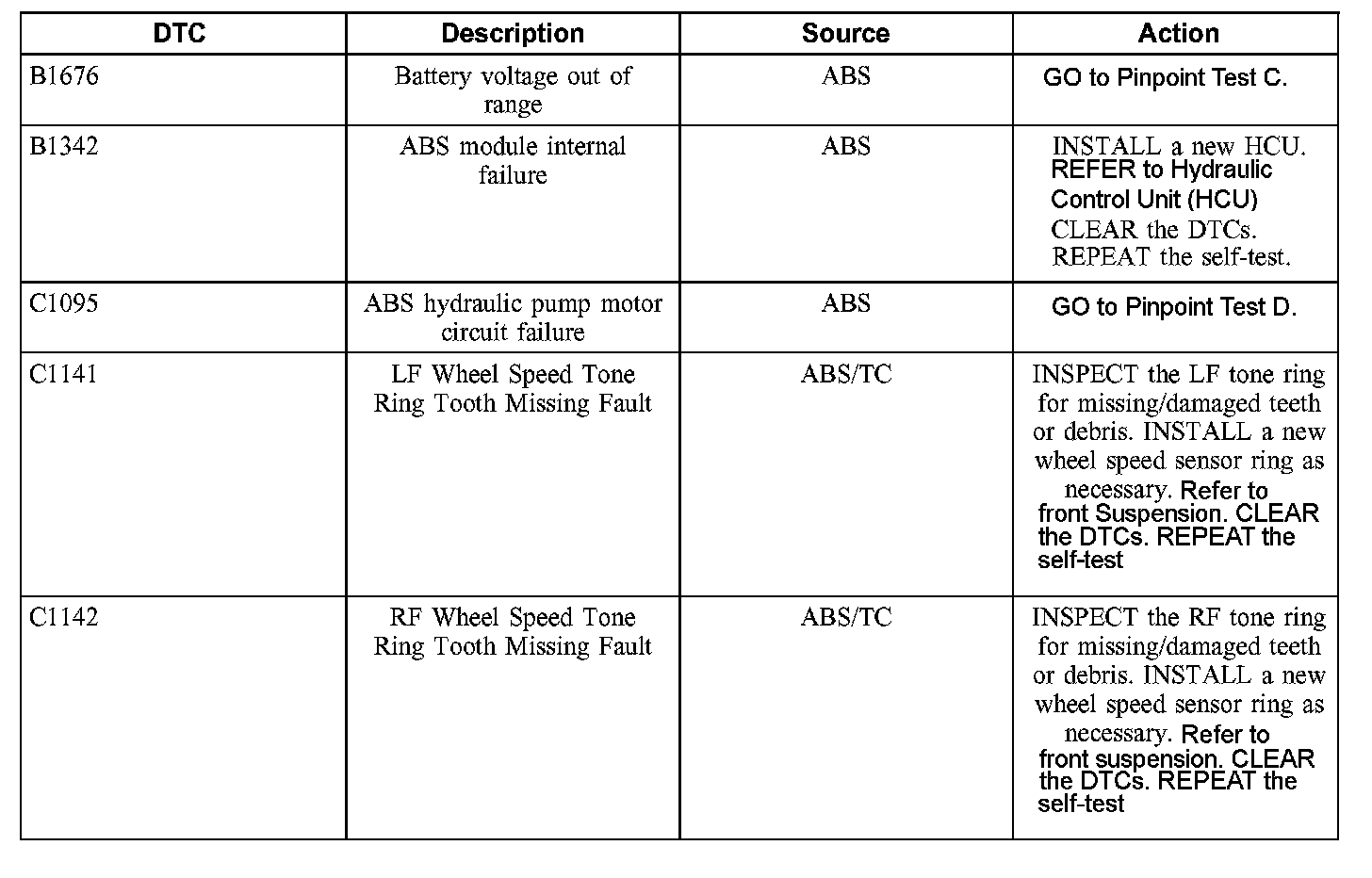 ABS Control Module Diagnostic Trouble Code (DTC) Index