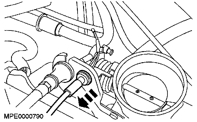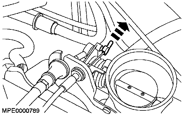 1. NOTE: Make sure downward pressure is applied to the speed control actuator cable cover prior to rotating it clockwise.