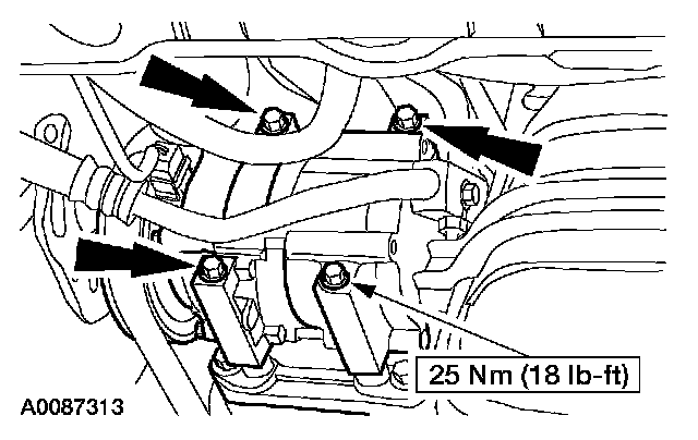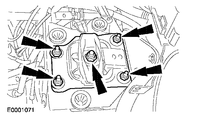 21. Tighten the engine rear mount nuts and bolts.