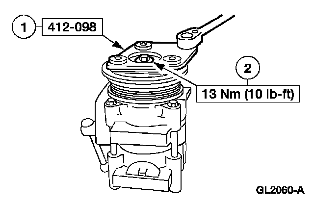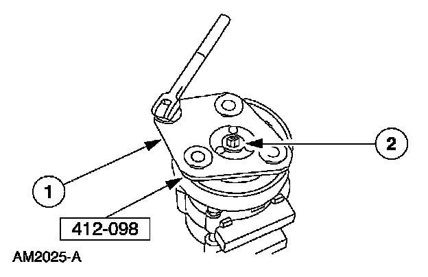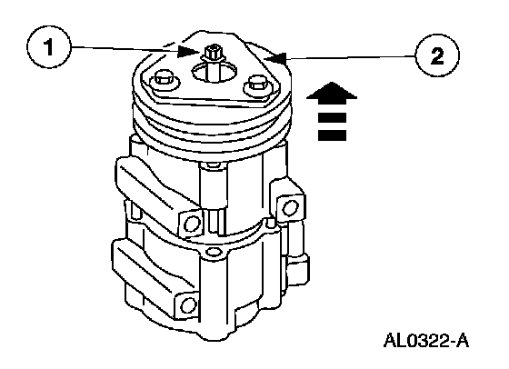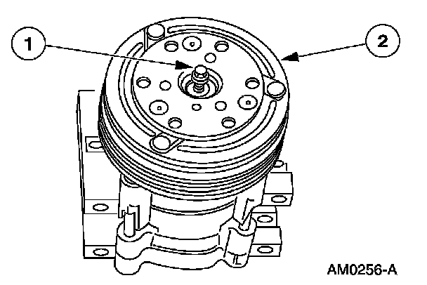 2. CAUTION: Do not use air tools. The A/C clutch field coil can be easily damaged.