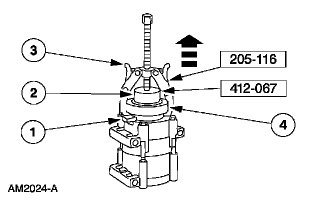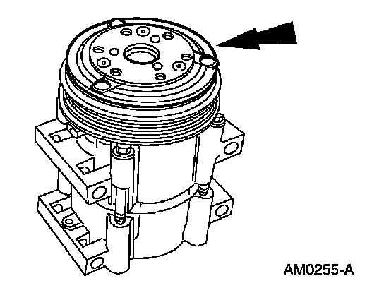 8. CAUTION: Do not use air tools. The A/C clutch field coil can be easily damaged.