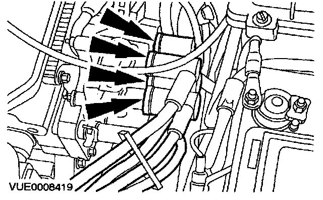 2. Disconnect the ignition coil and capacitor electrical connectors.