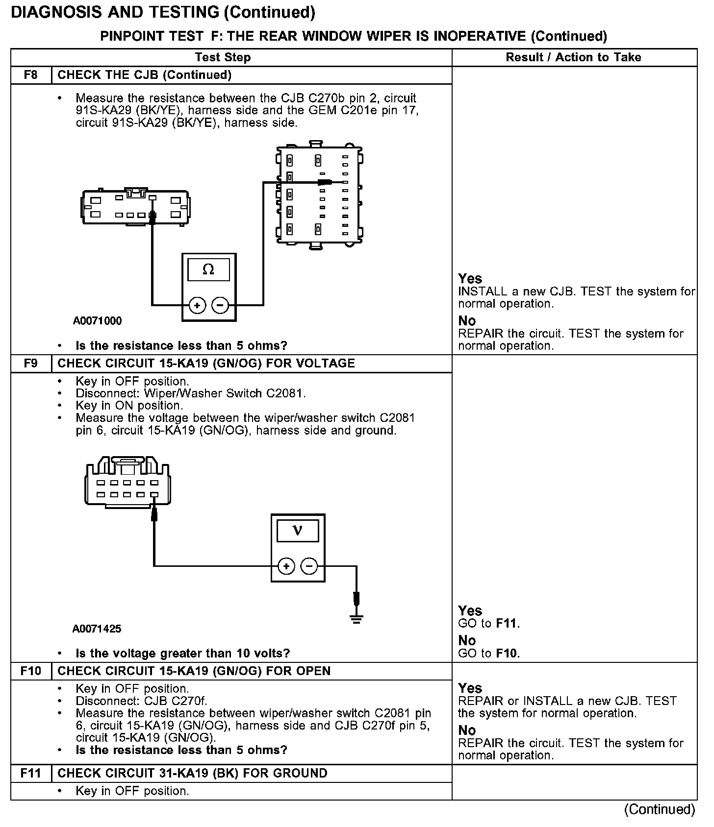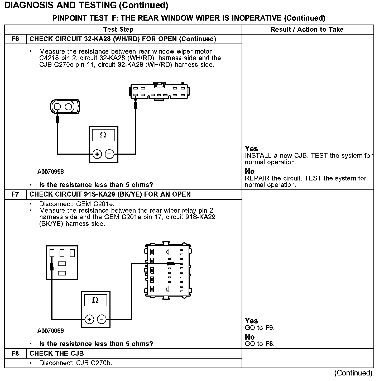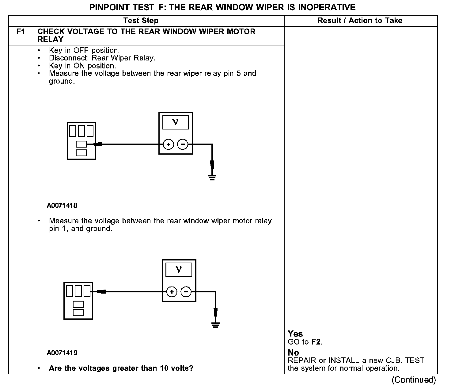 PINPOINT TEST F: THE REAR WINDOW WIPER IS INOPERATIVE