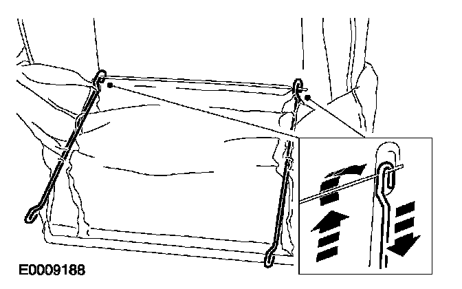 15. Remove the tensioning rods from the backrest cover if a new backrest cover is to be used.