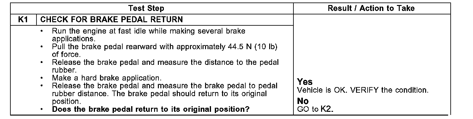 PINPOINT TEST K: SLOW OR INCOMPLETE BRAKE PEDAL RETURN