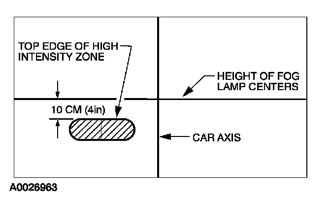 3. The correct visual aim for the fog lamps is with the top edge of the high-intensity zone 10 cm (4 in) below the horizontal center of the fog lamps.