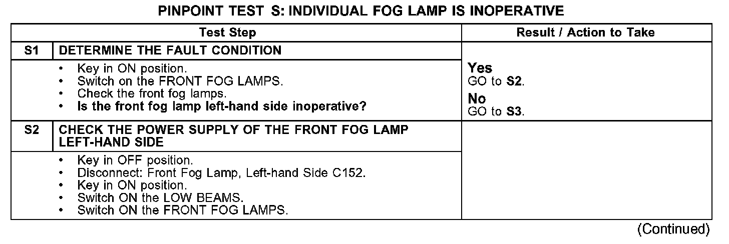 PINPOINT TEST S: INDIVIDUAL FOG LAMP IS INOPERATIVE