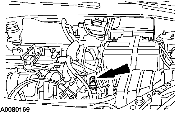 12. Add 3 liters (3.17 quarts) of automatic transmission fluid to the transaxle.