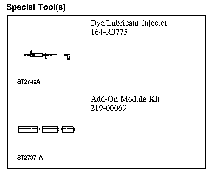 2. Assemble the dye/lubricant injector using the correct adapters to match the amount of PAG oil to be injected.