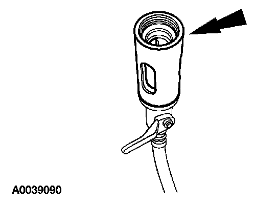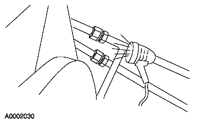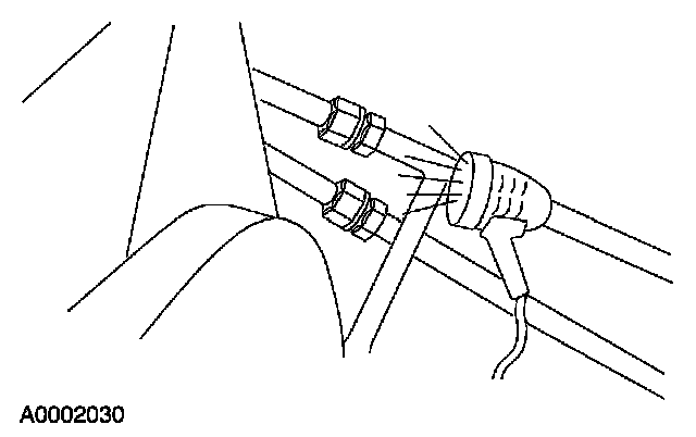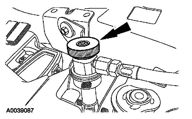 8. Remove the fluorescent dye injector from the low-pressure service gauge port valve and the R-134a A/C refrigerant service center or manifold gauge set.