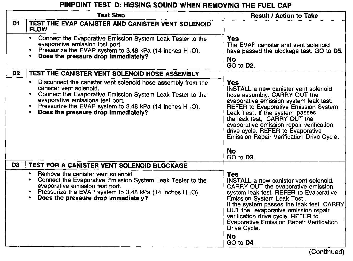 PINPOINT TEST D: HISSING SOUND WHEN REMOVING THE FUEL CAP