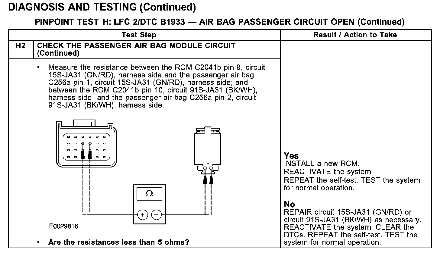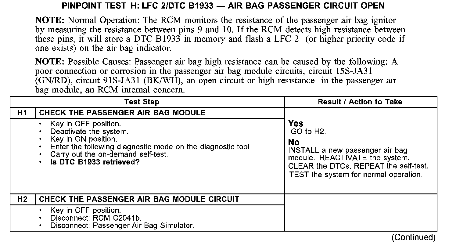 PINPOINT TEST H: LFC 2/DTC B1933 -