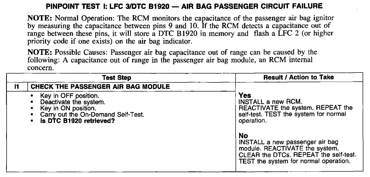 PINPOINT TEST I: LFC 3/DTC B1920 -