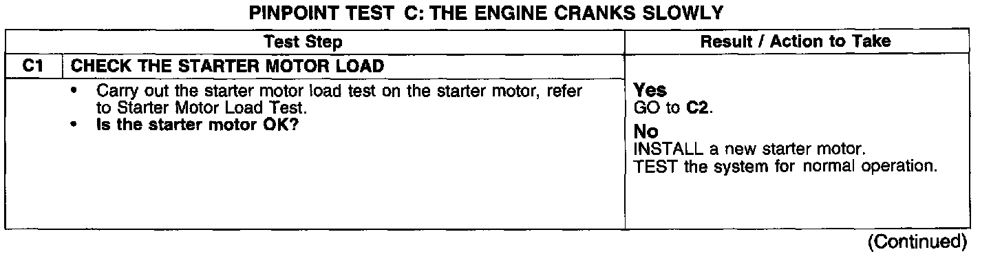 PINPOINT TEST C: THE ENGINE CRANKS SLOWLY